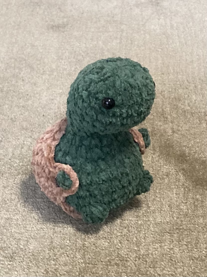Kärpässienet, suloisia! Kilpikonnat, suloisia! Kärpässienikilpparit, no suloisia nekin! Vielä yksi erikoiskilppari on virkattuna. Pään ja vartalon yhteispituus on noin 10 cm.