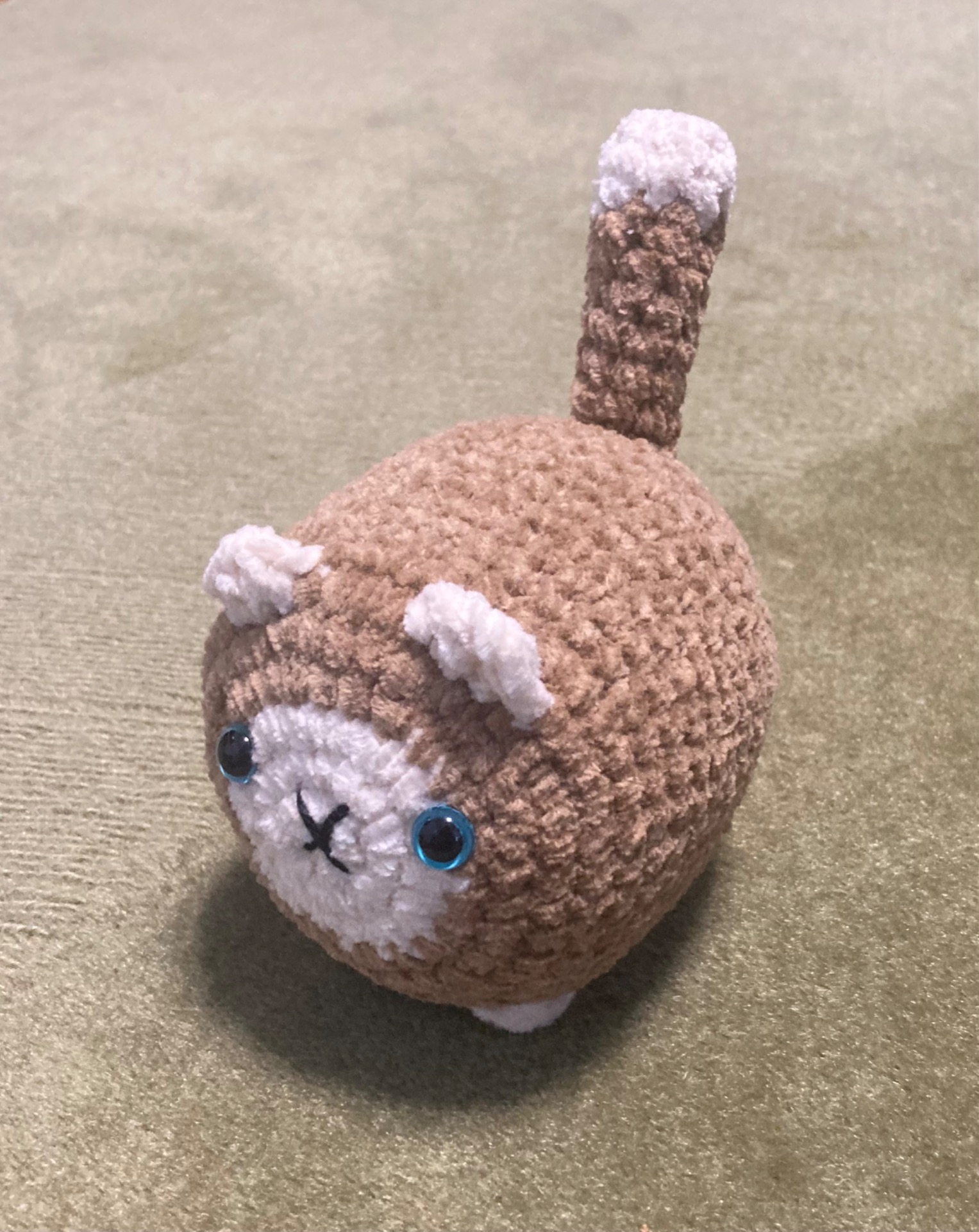 Tämä kissa on isompi ja korkeus maasta hännän päähän on 13,5 cm ja vartalon pituus on noin 9,5 cm.