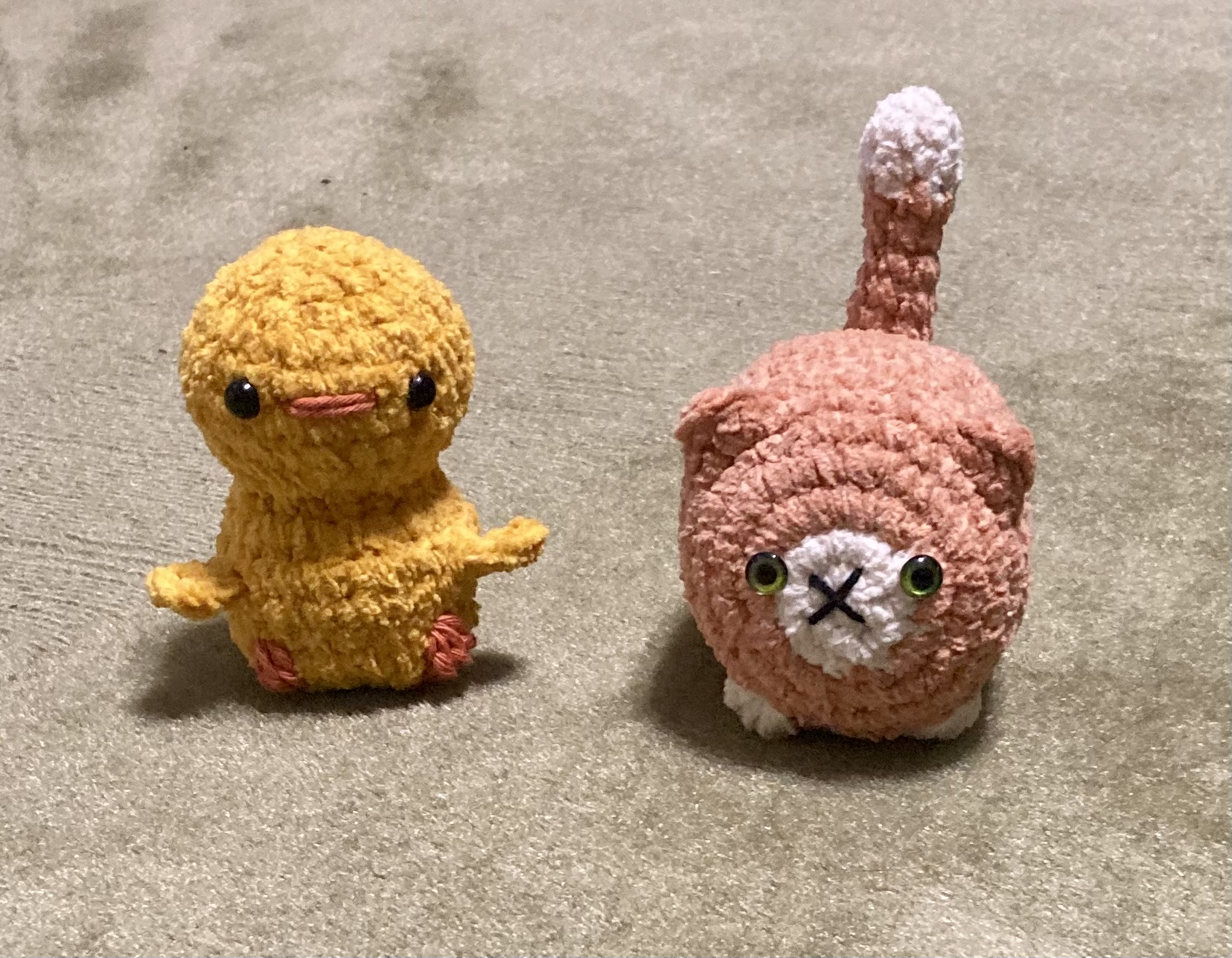 5.1. Pupuja. Pääsisinköhän jonnekin pääsiäismarkkinoille. Kunhan saan pienempiä silmiä, virkkaan pieniä tipusia.